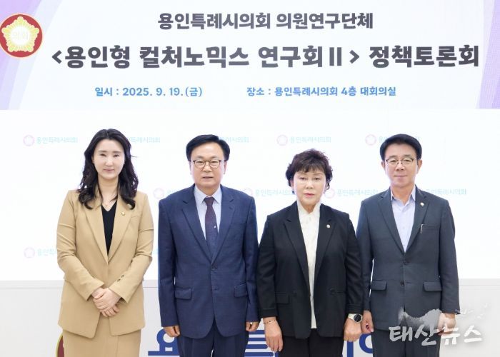 태산뉴스 이지율 기자 | 용인특례시의회 의원연구단체 ‘용인형 컬처노믹스 연구회Ⅱ’가 19일 의회 대회의실에서 ‘용인시 문화관광산업 육성을 위한 컬처노믹스 전략 수립’ 연구용역과 관련해 정책토론회를 개최했다.