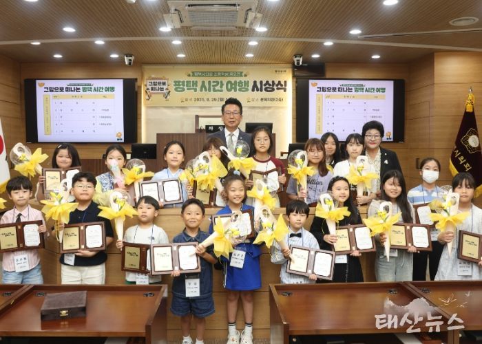 태산뉴스 이지율 기자 | 평택시의회는 지난 29일 평택시의회 본회의장(2층)에서 평택시 초등학생 공모전 '그림으로 떠나는 평택 시간여행' 시상식을 개최했다.