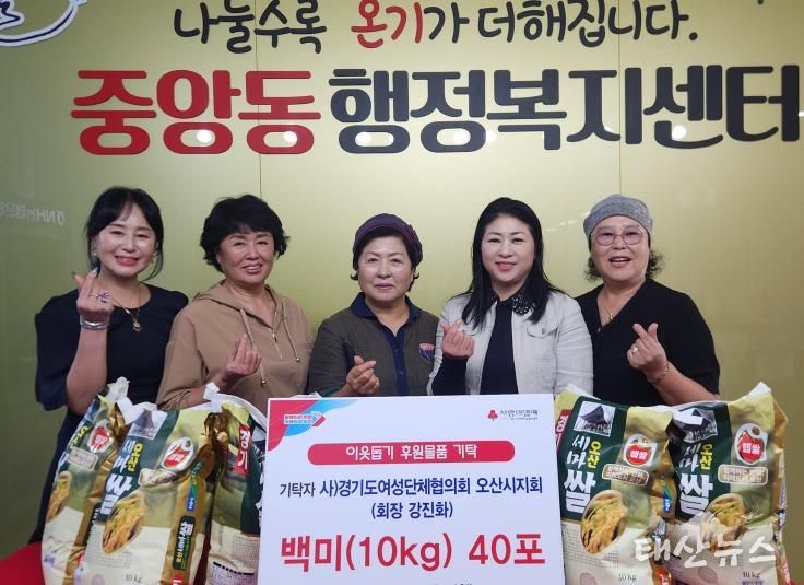 태산뉴스 이동욱 기자 | 사단법인 경기도여성단체협의회 오산시지회는 지난 10월 1일, 추석 명절을 앞두고 지역 내 어려운 이웃을 위해 백미(10kg) 5포씩을 오산시 관내 8개 동 행정복지센터에 각각 기탁했다.
