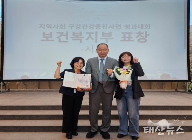 태산뉴스 이지율 기자 | 군포시 산본보건지소는 지난 9월 26일 서울 용산구 소재 피스앤파크 컨벤션에서 개최된 ‘2025년 지역사회 구강보건사업 성과대회’에서 국민 구강건강 증진에 기여한 공로를 인정받아 보건복지부 장관 표창을 수상했다.