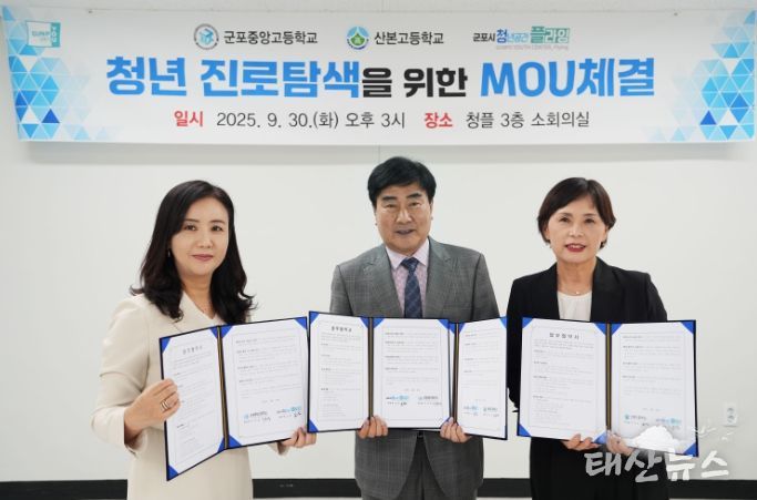 태산뉴스 이지율 기자 | 군포시 청년공간플라잉(센터장 조남)은 지난 9월 30일 군포중앙고(교장 이은경), 산본고(교장 김은정)와 함께 2025 창업스쿨 사업 관련 업무협약을 맺었다.