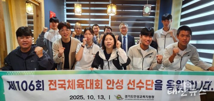 태산뉴스 김준수 기자 | 경기도안성교육지원청은 안성교육지원청 교육장, 교육과장, 안성시 체육회 임원 등이 참석한 가운데 제106회 전국체육대회에 출전하는 안성 관내 고등학교 소프트테니스 학생 선수들의 건강하고 활기찬 경기를 기원하며 대표 선수들을 격려했다.