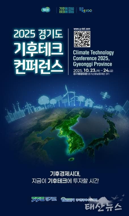 태산뉴스 김준수 기자 | 경기도는 10월 23~24일 수원 경기융합타운(경기신용보증재단 3층)에서 ‘2025 경기도 기후테크 컨퍼런스’를 개최한다.