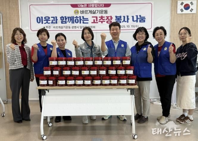 태산뉴스 이동욱 기자 | 광명시 일직동 바르게살기위원회는 지난 15일 관내 어려운 이웃을 돕기 위해 ‘이웃과 함께 하는 고추장 나눔 봉사’ 활동을 실시했다.