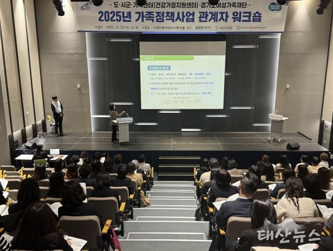 태산뉴스 김준수 기자 | 경기도는 22일 수원컨벤션센터 이벤트홀에서 도, 시군 공무원, 가족센터(건강가정지원센터) 및 경기도여성가족재단 관계자 등 100여 명이 참석한 가운데 ‘2025년 가족정책사업 관계자 워크숍’을 개최했다.