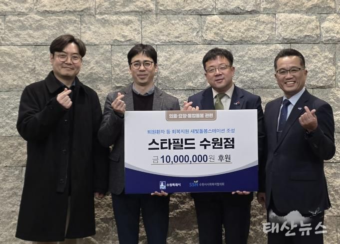 성금은 수원시사회복지협의회에 지정 기탁해 새빛돌봄스테이션 이용자를 위한 무장벽(배리어프리)설비 설치, 안전·편의 물품 지원 등에 사용할 예정이다.