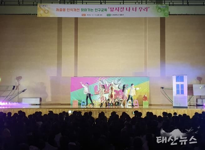 또, 지난 13일에는 다원중학교 강당에서 중학생 3학년 학생 420명을 대상으로 저출생 극복 인식개선 인구교육 뮤지컬인 ‘나 너 우리’ 공연을 운영했다.