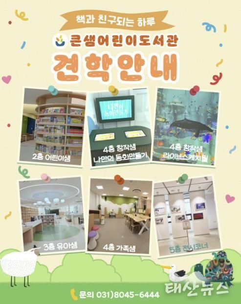 태산뉴스 이동욱 기자 | 안양시 큰샘어린이도서관은 오는 3월부터 안양시 관내 어린이집과 유치원 등 관련 기관 및 단체를 대상으로 도서관 견학 프로그램을 운영한다고 14일 밝혔다.