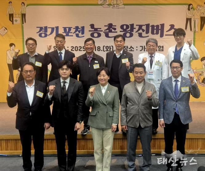 태산뉴스 김준수 기자 | 경기도의회 농정해양위원회 부위원장 윤종영 의원(국민의힘, 연천)이 지난 18일 포천 가산체육문화센터에서 진행된 ‘농촌 왕진버스’ 행사에서 농림축산식품부 송미령 장관과 박성우 농촌정책국장을 접견하고 연천군을 ‘농촌 체류형 복합단지’로 지정해줄 것을 건의했다.