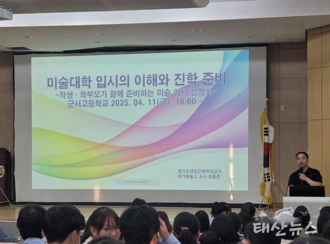 강사로 초빙된 경기예술고등학교 최용준 교사(경기도교육청 진로진학팀 미술분과 리더)는 입시 구조와 전형을 전문적으로 설명하고 학생들이 주체적으로 진학 전략을 세울 수 있도록 현실적인 조언을 전했다. 최용준 교사는 군서고등학교 교육공동체의 높은 관심과 열정 속에서 강사로서의 보람을 느꼈다고 밝혔다.