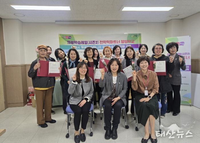 태산뉴스 이동욱 기자 | 의왕시는 지난 22일 내손동 평생학습센터에서‘2025년 의왕학습레일(시즌2) 평생학습파트너’양성과정 수료식을 개최했다.