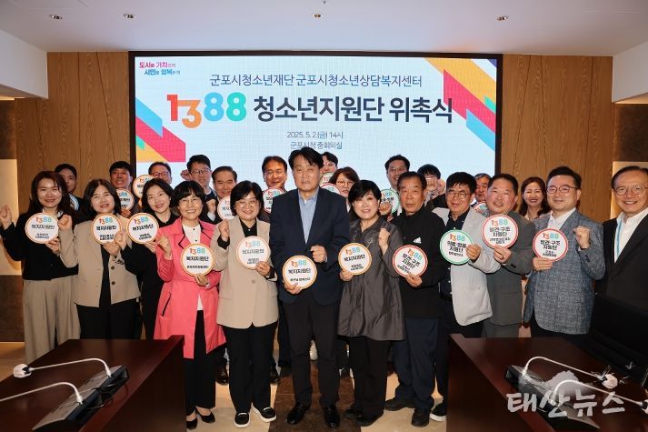 태산뉴스 이동욱 기자 | 군포시는 2025년 5월 2일 오후 2시 시청 중회의실에서 ‘1388청소년지원단 위촉식’을 개최했다. 하은호 시장은 신규 15개소, 연임 16개소 등 지원단 31개 기관 및 위원에게 위촉장을 전달했다.