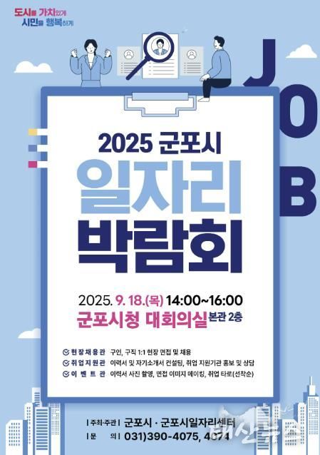 태산뉴스 이지율 기자 | 군포시는 오는 9월 18일 오후 2시, 군포시청 대회의실에서 ‘2025년 하반기 군포시 일자리 박람회’를 개최한다. 이번 박람회는 지역 내 우수 기업과 구직자가 직접 만나는 채용의 장으로 일자리 기회를 제공할 예정이다.