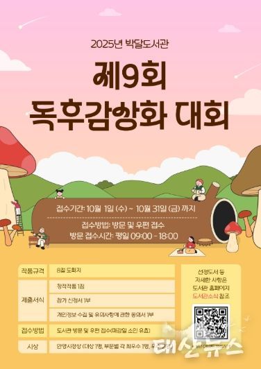 태산뉴스 이동욱 기자 | 안양시립박달도서관은 안양시 초등학생들의 독서 의욕 고취 및 독서 습관 형성에 기여하고자 오는 10월 1일부터 10월 31일까지‘제9회 독후감상화 대회’를 운영한다고 9일 밝혔다.