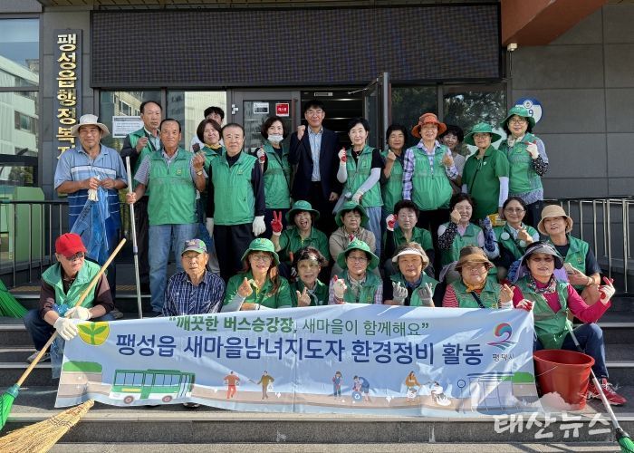 태산뉴스 이동욱 기자 | 평택시 팽성읍 새마을 남녀지도자협의회는 10일 추석을 앞두고 주민들과 귀성객들이 쾌적하게 대중교통을 이용할 수 있도록 관내 버스 승강장에서 환경정화 활동을 펼쳤다.