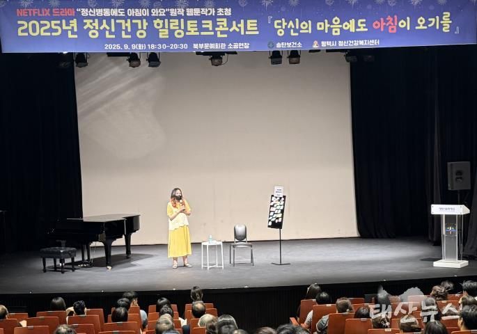 태산뉴스 이지율 기자 | 평택시 정신건강복지센터(송탄보건소)는 세계 자살 예방의 날(9월10일)을 맞아 지난 9일 화요일 오후 6시 30분, 평택시 북부문예회관에서 열린 정신건강 힐링 토크콘서트 ‘당신의 마음에도 아침이 오기를’이 시민들의 큰 호응 속에 개최됐다고 밝혔다.