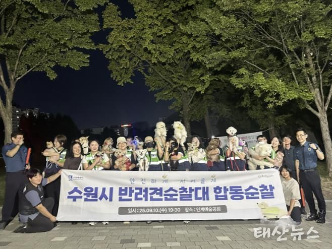 태산뉴스 이동욱 기자 | 수원시는 10~11일 4개 구 관할 경찰서와 함께 ‘2025년 수원시 반려견 순찰대 구별 야간 합동순찰’을 했다.