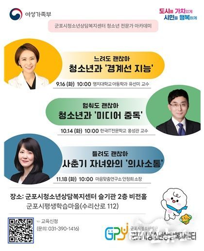 군포시청소년상담복지센터 센터장은 “청소년 특성에 대한 심층적 이해를 바탕으로 실질적이고 효과적인 지원이 이루어질 수 있도록 지속적으로 전문교육을 추진해 나가겠다”라고 밝혔다.