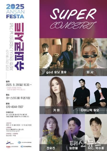 태산뉴스 김준수 기자 | 안산시는 오는 9월 28일 오후 4시 30분부터 와~스타디움 주경기장에서 ‘2025 안산페스타 제2회 기업인의 날 기념 슈퍼콘서트’를 개최한다고 15일 밝혔다.