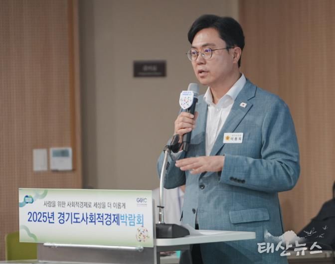 태산뉴스 김준수 기자 | 경기도의회 더불어민주당 총괄수석부대표 이용욱 의원(파주3)은 13일 열린 2025 경기도 사회적경제박람회 내 '경기도 마을기업 서로 만남의 날' 행사에 참석해 축사를 전하며, 마을기업의 현장 의견을 청취하고 제도적 지원 강화를 약속했다.