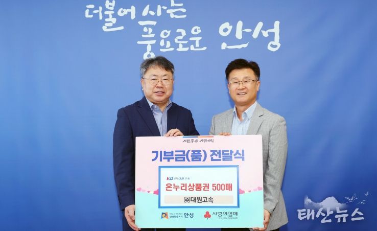 태산뉴스 이동욱 기자 | 안성시는 지난 15일 ㈜대원고속과 안성마춤한우회가 다가오는 추석 명절을 맞아 지역사회 이웃들을 위한 따뜻한 나눔 활동을 펼쳤다고 밝혔다.