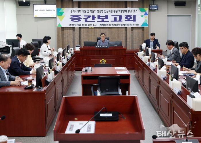 태산뉴스 김준수 기자 | 경기도의회 미래과학협력위원회는 9월 15일, 경기도의회 위원회 회의실에서 『경기도의회 의원 및 직원의 생성형 인공지능 활용 역량강화 방안 연구』에 대한 중간보고회를 개최했다.