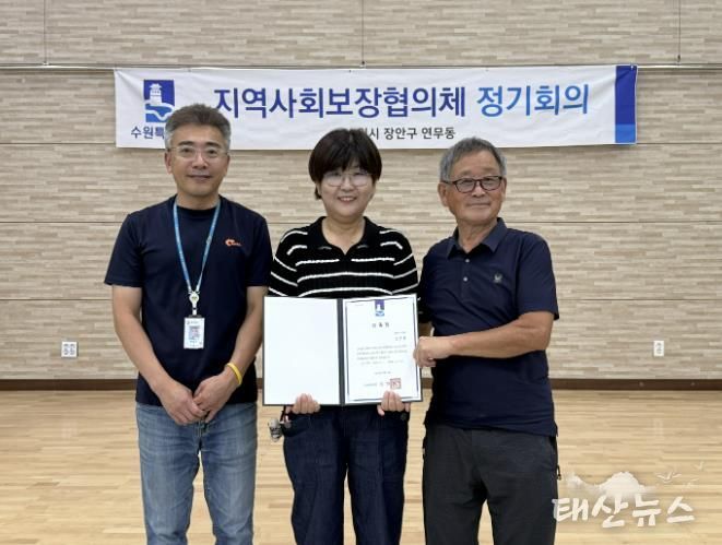 태산뉴스 이동욱 기자 | 수원시 장안구 연무동은 지난 16일, 연무동 지역사회보장협의체 9월 정기회의에서 신규 위원 1명에게 위촉장을 수여했다.