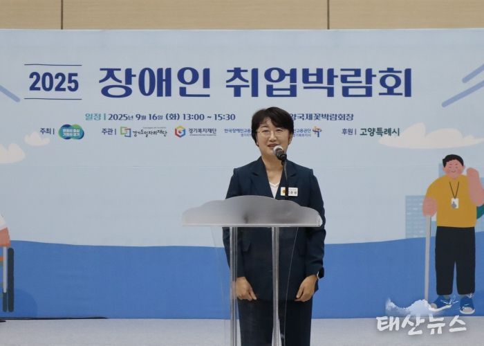 태산뉴스 김준수 기자 | 경기도의회 경제노동위원회 고은정 위원장(더불어민주당, 고양10)은 16일 고양국제꽃박람회장에서 열린 ‘2025 경기도 장애인 취업박람회’ 공동 개막식에 참석해 장애인 일자리 확대의 중요성과 경기 남북부의 균형 있는 접근 필요성을 강조했다.