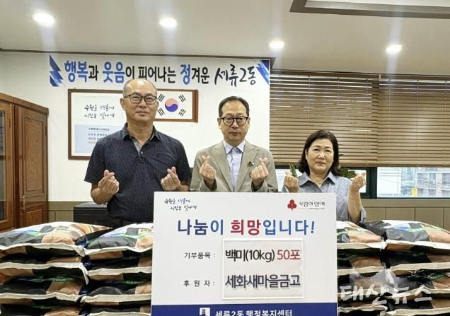 태산뉴스 이동욱 기자 | 수원시 권선구 세류2동 소재 MG세화새마을금고는 지난 17일, 추석 명절을 맞이하여 취약계층을 위한 백미 10kg 50포를 세류2동 행정복지센터에 기부했다.