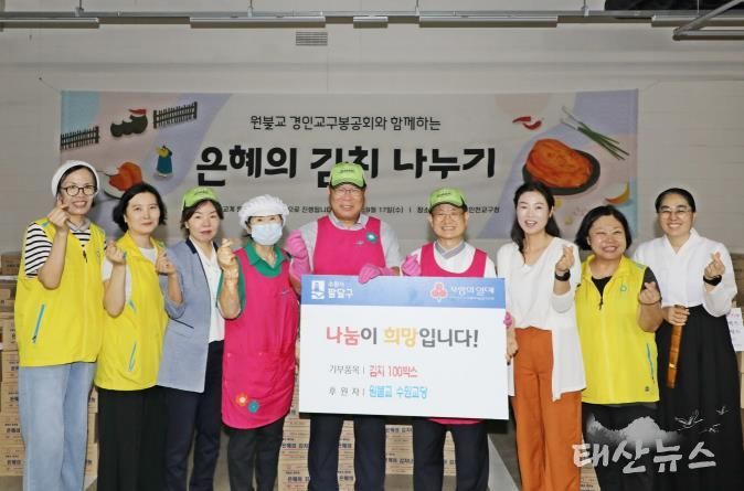 태산뉴스 이동욱 기자 | 원불교 수원교당은 지난 17일, 수원시 팔달구(구청장 이상균)에 김치 100박스를 기부했다.