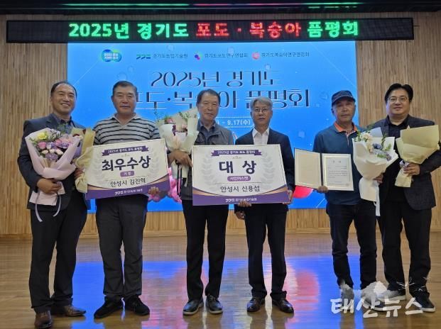 지난 9월 17일 경기도농업기술원이 주관한 2025년 경기도 포도·복숭아 품평회에서 안성시 서운면 신용섭 농업인이 출품한 샤인머스캣이 포도 부문 대상을 수상했다. 이어 서운면 김진혁 농업인은 거봉으로 최우수상을, 일죽면 조황주 농업인은 장호원황도로 복숭아 부문 장려상을 수상하며 안성 농가의 위상을 높였다.