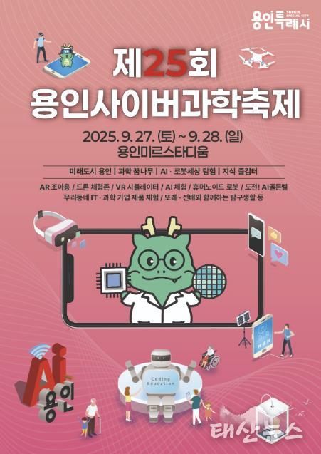 태산뉴스 이지율 기자 | 용인특례시는 27일부터 28일까지 용인미르스타디움‘에서 열리는 ’제30회 용인시민의 날‘ 행사에서 ’2025 용인사이버과학축제‘를 개최한다고 19일 밝혔다.