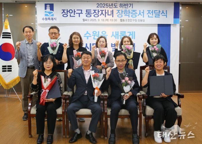 태산뉴스 이동욱 기자 | 수원시 장안구는 지난 18일, 장안구청 상황실에서 2025년 하반기 통장자녀 장학증서 전달식을 개최했다.