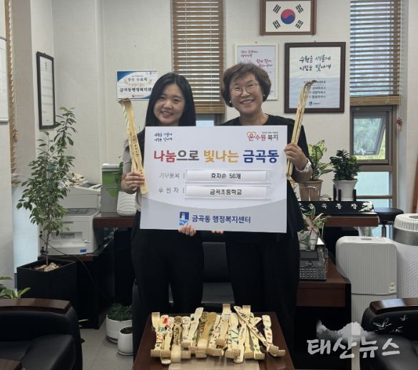 태산뉴스 이동욱 기자 | 수원시 권선구 금곡동 행정복지센터는 지난 18일, 관내 금곡초등학교 5, 6학년 학생들이 직접 만든 효자손 50개를 기부했다고 밝혔다.