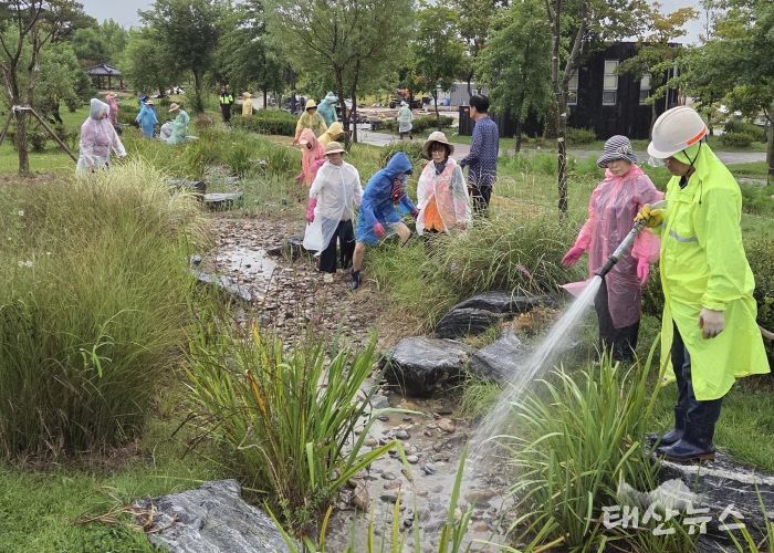 태산뉴스 이동욱 기자 | 평택시는 평택시민정원사들과 함께 ‘2025 제13회 경기정원문화박람회’의 성공적인 운영을 위해 지난 16일 농업생태원 미르내 실개천 일원에서 오횡묵 정원 자갈 세척 및 정리작업을 실시했다.