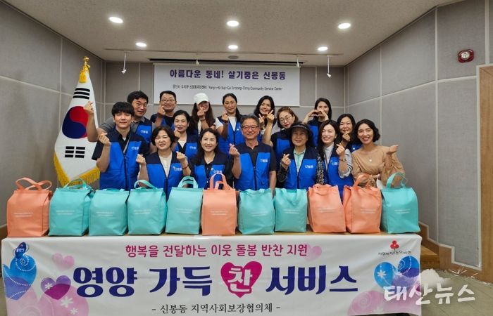 신봉동 지역사회보장협의체는 19일 취약계층 반찬 지원 특화사업 ‘영양가득찬’의 일환으로 홀로 사는 어르신, 장애인, 한부모 가정 등 총 11가구에 반찬을 전달했다. 또 반찬과 함께 ㈜도마치111이 기부한 빵도 전달했다.