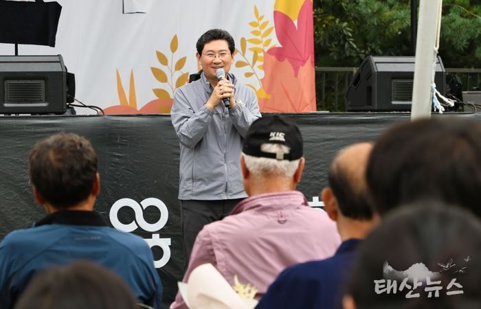 태산뉴스 이동욱 기자 | 이상일 용인특례시장은 지난 20일 오후 마북동행정복지센터에서 ‘2025년 마북동민의 날’을 맞아 열린 ‘우리동네 운동회 및 주민자치 작품발표회’를 찾아 주민들에게 축하의 뜻을 전했다.