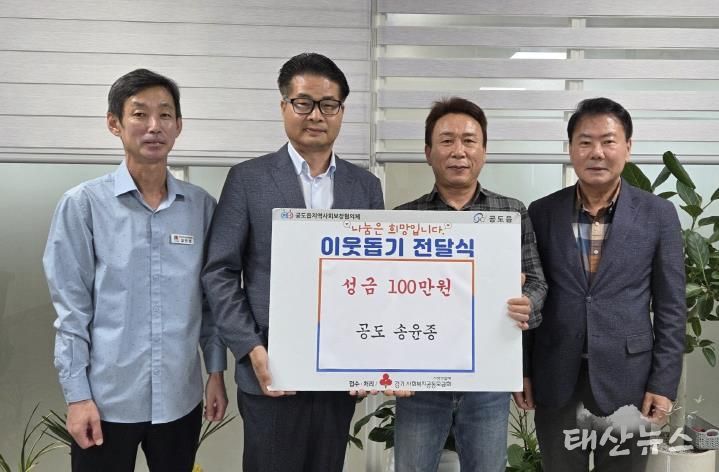 정만수 공도읍장은 “개인의 소중한 정성이 지역 사회에 따뜻한 울림을 주고 있다”며 성금은 도움이 절실한 이웃들에게 투명하게 전달될 것이라고 전했다.