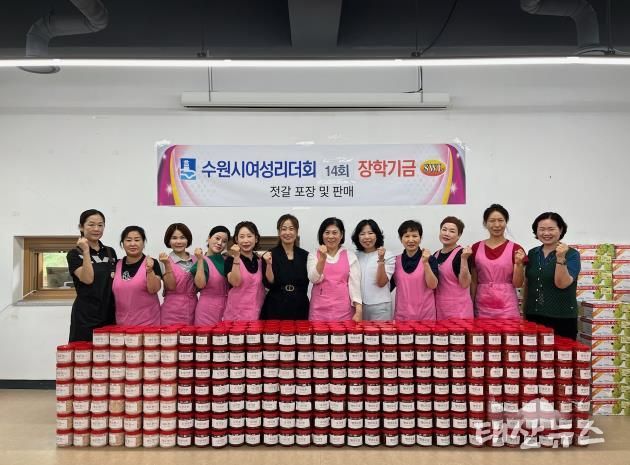 수원시여성리더회 김수민 총회장을 비롯한 사무국 임원 8명이 낙지젓, 명란젓 등을 포장했다. 포장한 젓갈은 판매해 수익금을 장학금으로 기부할 예정이다.