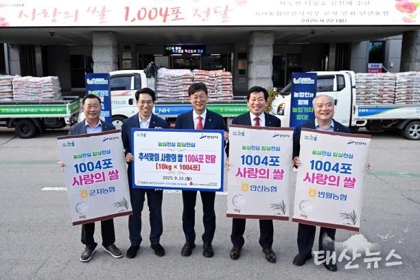 태산뉴스 이동욱 기자 | 안산시는 지난 22일 NH농협 안산시지부 지역농협조합 군자농협, 반월농협, 안산농협으로부터 사랑의 쌀 1천4포(포대당 10㎏)를 기탁받았다고 23일 밝혔다.