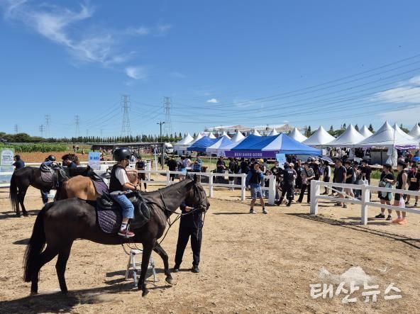 태산뉴스 이동욱 기자 | 안산시는 지난 19일부터 21일까지 사흘간 대부도 바다향기테마파크에서 열린 ‘대부포도축제’에서 시민들이 무료로 승마를 체험할 수 있는 ‘도심 속 승마축제’를 개최했다고 23일 밝혔다.