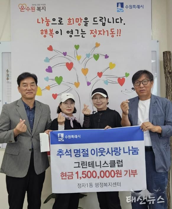 태산뉴스 이동욱 기자 | 수원시 장안구 정자1동은 그린테니스클럽이 지난 23일, 추석 명절을 맞아 관내 취약계층을 돕기 위해 현금 150만 원을 기부했다고 밝혔다.