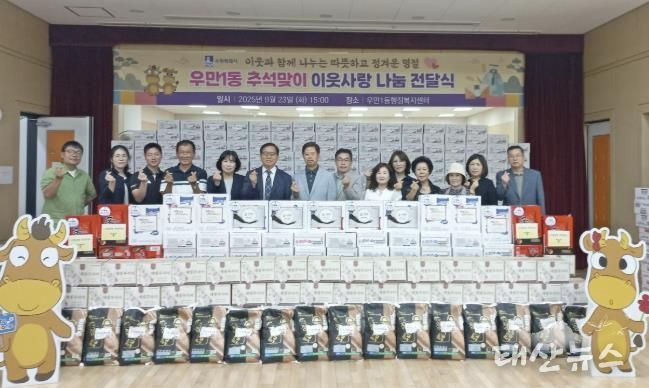 이번 전달식은 관내 유관기관, 기업체, 개인 후원자들의 정성과 따뜻한 마음이 모여 이루어졌다. 후원금과 함께 백미, 라면 등 풍성한 물품이 준비되어 우만1동 내 취약 계층에게 전달될 예정이며, 이를 통해 어려운 이웃들이 정을 나누며 따뜻한 추석 명절을 보낼 수 있도록 지원할 계획이다.