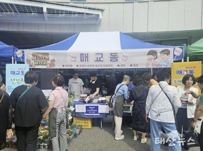 태산뉴스 이동욱 기자 | 수원시 팔달구 매교동 지역사회보장협의체는 지난 23일 수원시 팔달구청 앞마당에서 진행한 ‘팔달구 이웃사랑 바자회’에 참여했다.