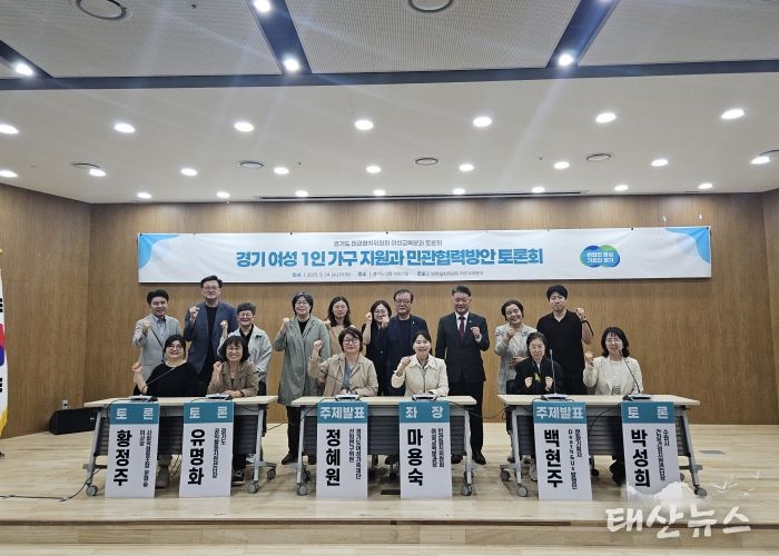 태산뉴스 김준수 기자 | 경기도의회 김정호 경기도교육청 예산결산특별위원장(국민의힘, 광명1)은 24일, 경기도의회 대회의실에서 열린 '경기 여성 1인가구 지원과 민관협력 방안 토론회'에 참석해, 급격히 증가하는 여성 1인가구 문제와 이에 대한 정책적 대응의 필요성을 강조했다.