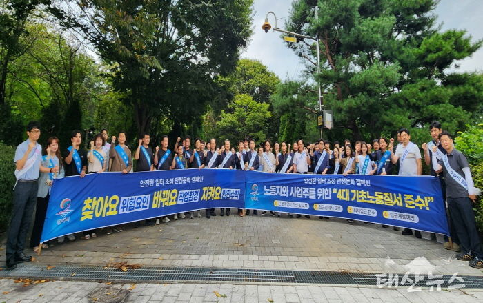 태산뉴스 이동욱 기자 | 평택시 노사민정협의회가 지난 24일 후반기 산업안전 재해예방 및 일과 생활 균형 캠페인을 어연한산산업단지 일대에서 개최했다.
