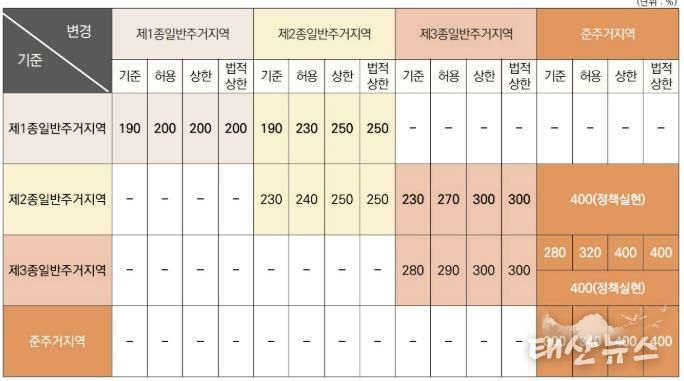 가장 큰 변화는 종 상향 제도 도입과 용적률 체계 개편이다. 당초 기본계획에는 없던 종 상향을 허용해 일반 정비사업에는 1단계 종 상향이 적용되고, 공모 등을 통해 선정된 역세권 정비사업은 최대 준주거지역(용적률 400%)까지 상향될 수 있도록 했다.