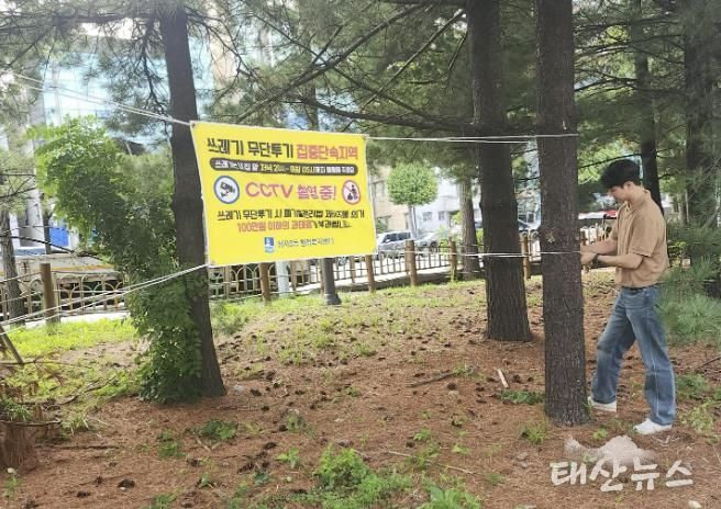 태산뉴스 이동욱 기자 | 수원시 장안구 정자3동은 지난 25일, 관내 생활폐기물 무단투기를 예방하고 쾌적한 마을 환경을 조성하기 위해 무단투기 근절을 알리는 현수막을 게시하는 활동을 벌였다.