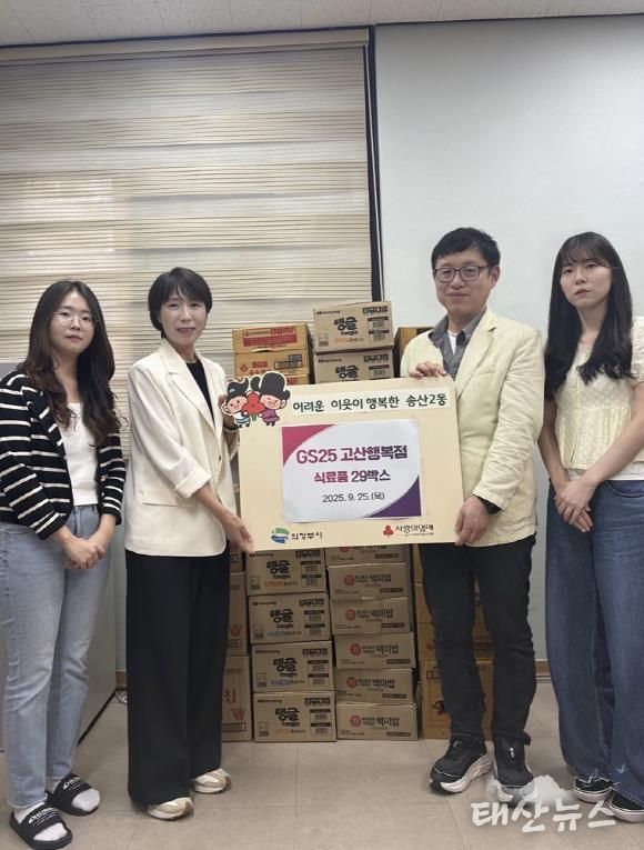 태산뉴스 이동욱 기자 | 의정부시 송산2동주민센터는 9월 25일 GS25 고산행복점이 지역 내 어려운 이웃을 위해 식료품 29상자를 기부했다고 밝혔다.