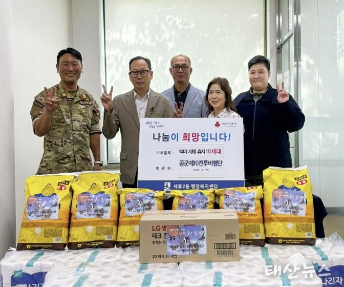 태산뉴스 이동욱 기자 | 수원시 권선구 세류2동에 위치한 공군 제10전투비행단은 지난 25일, ‘소음영향지역 지역 나눔 물품’을 기부했다.